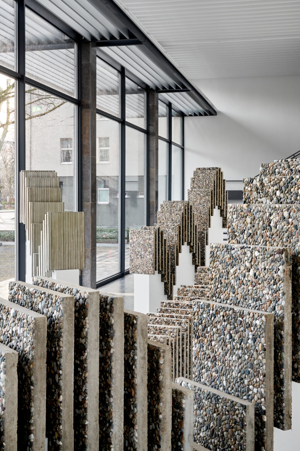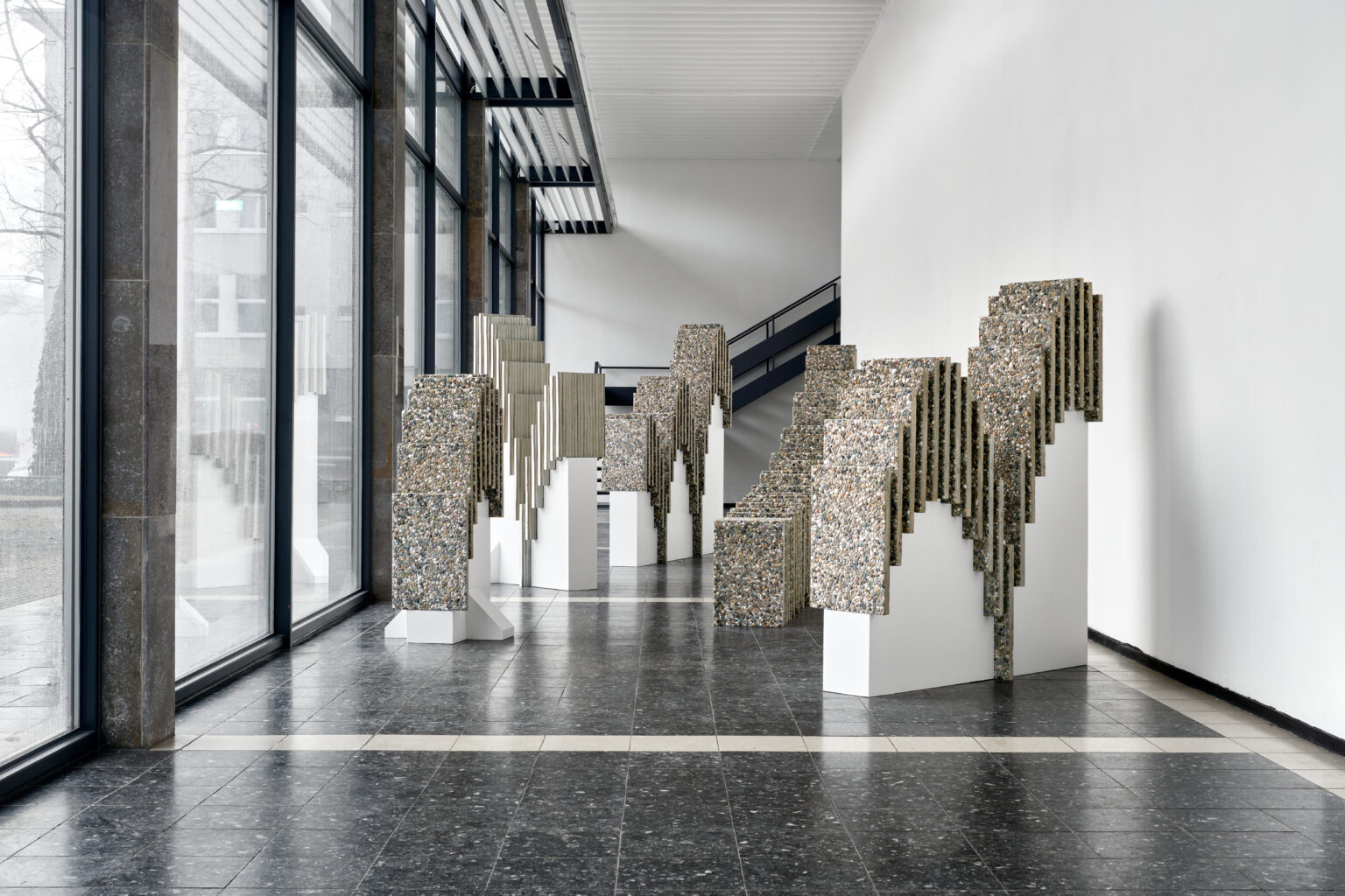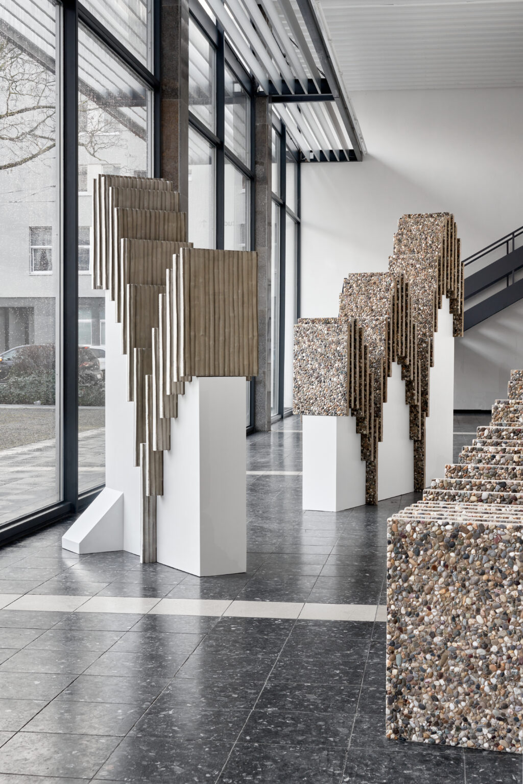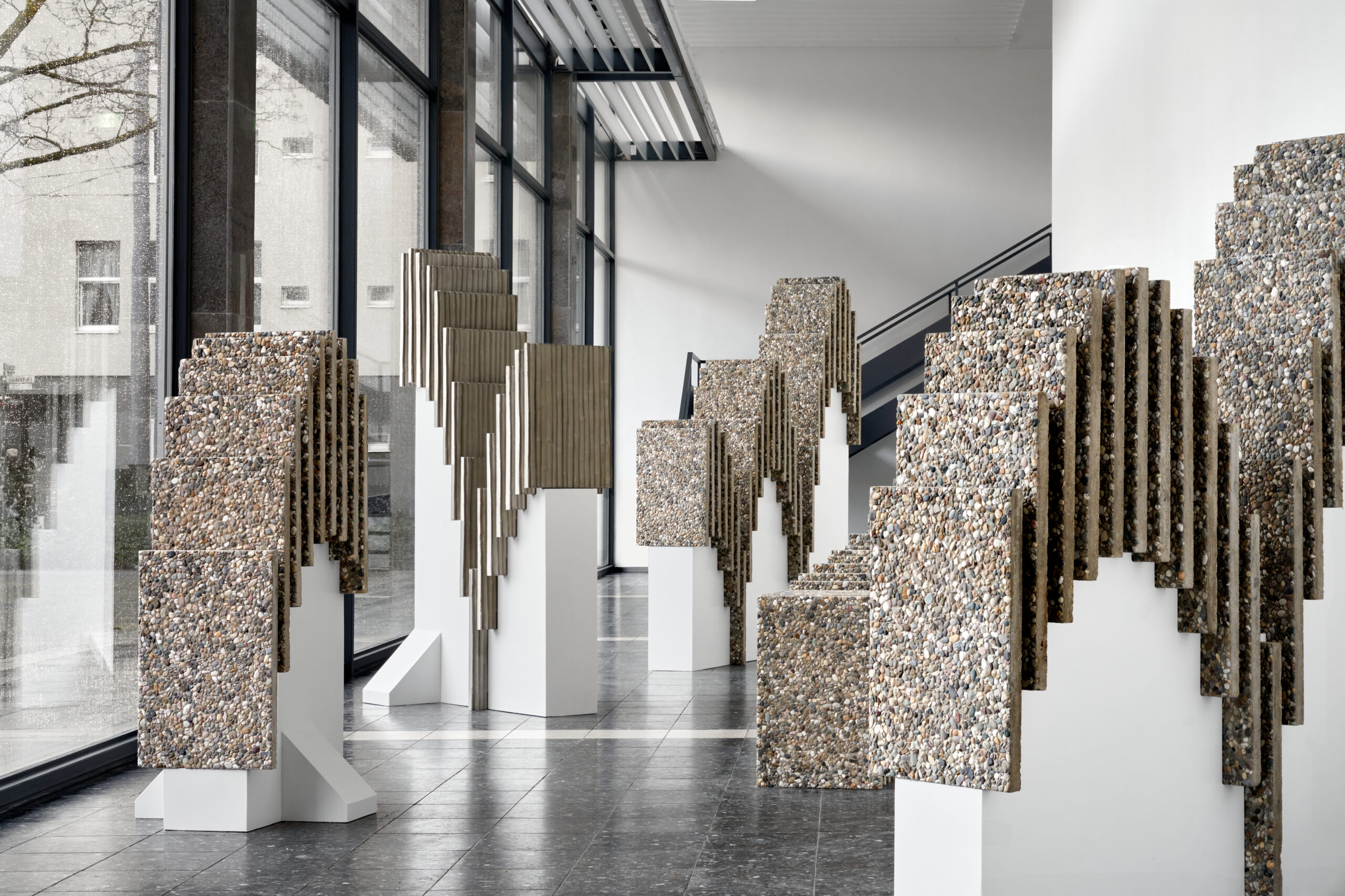 Fotografische Begleitung der Ausstellung Solitär von Mathias Weinfurter in der Kunsthalle Darmstadt (2025). Als Charlotte-Prinz-Stipendiat der Stadt Darmstadt setzte sich Weinfurter mit der Architektur der Nachkriegsmoderne auseinander – insbesondere mit der Großwohnsiedlung Kranichstein. In seinen raumgreifenden Installationen arbeitet er mit industriell gefertigten Materialien und verschiebt durch Wiederholung und gezielte Eingriffe deren Funktion und Bedeutung. Betonplatten, angelehnt an die Fassaden von Plattenbauten, „springen“ durch den Ausstellungsraum und verweisen auf Themen wie Isolation, Struktur und urbane Erinnerung.
