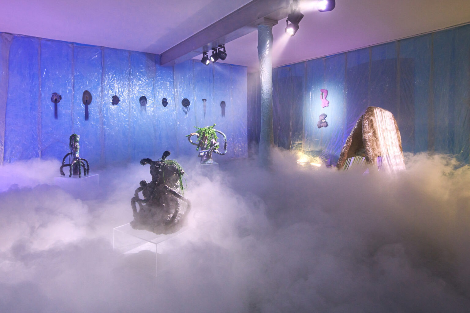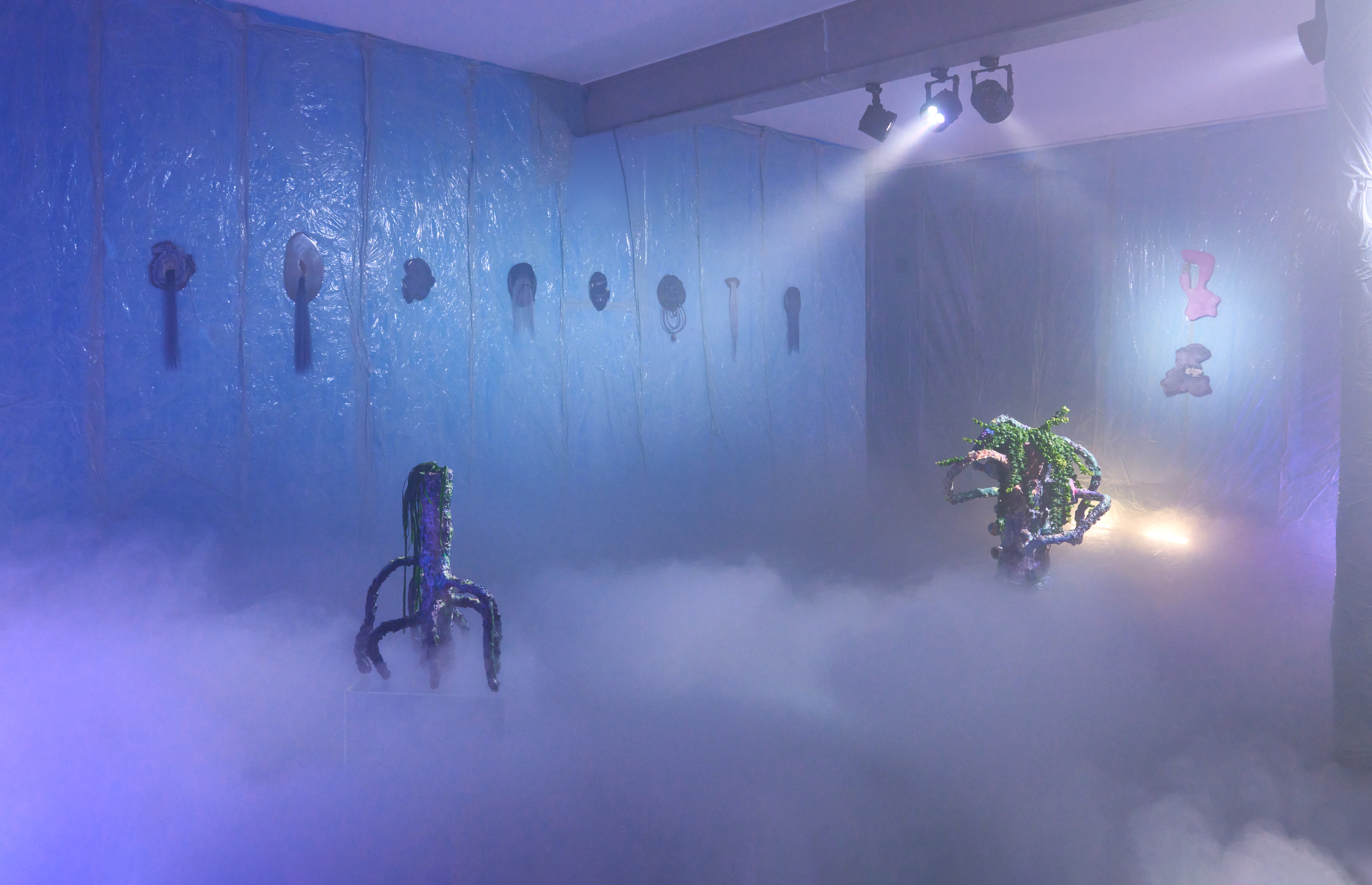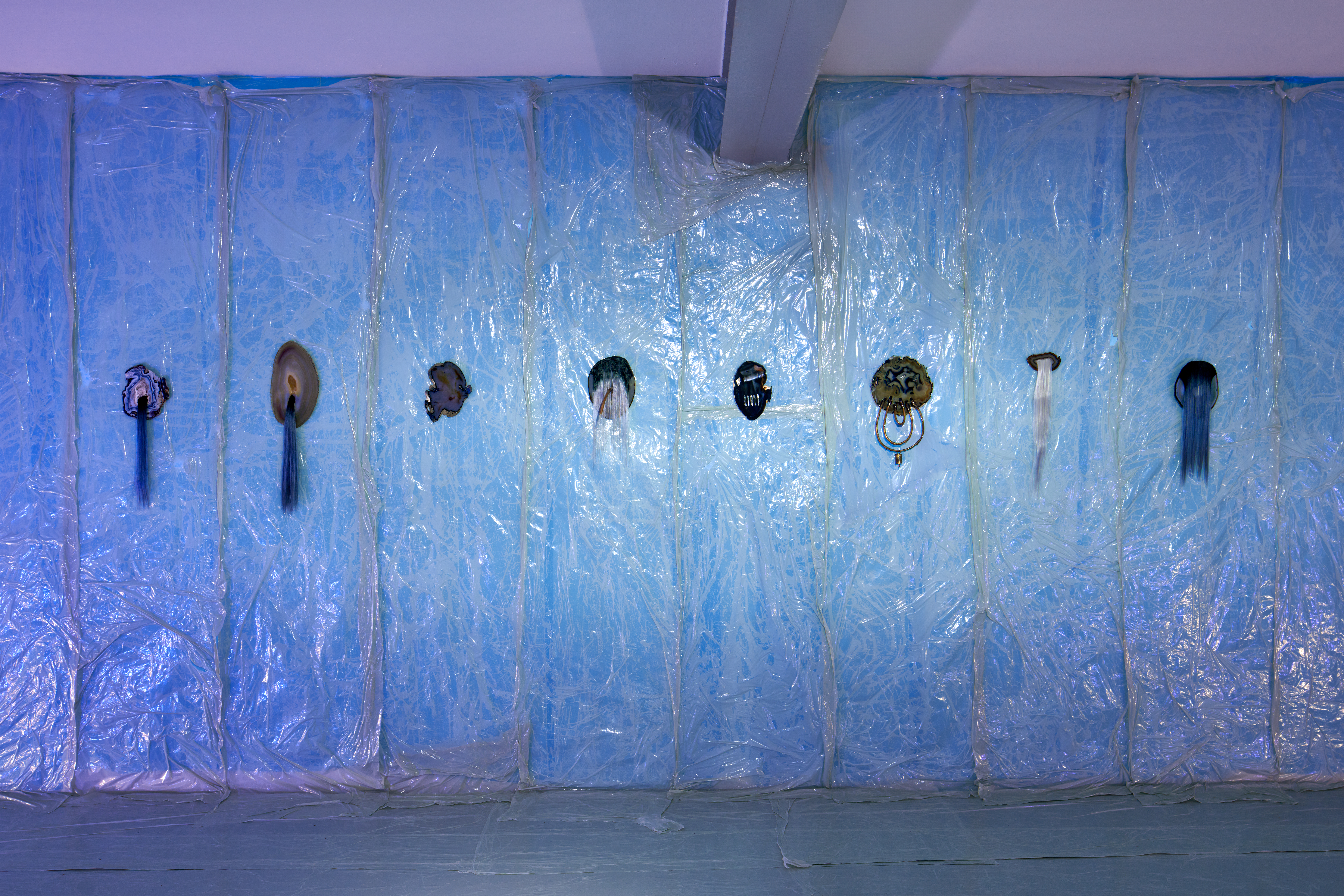 Für die Ausstellung „we are in between worlds“ von Tina Kohlmann in der freitagsküche, Frankfurt, habe ich die fotografische Dokumentation übernommen. Zwischen Mineral, Kunsthaar und mythischer Referenz entsteht ein Raum im Schwebezustand. Meine Bilder halten diese fragile, fast okkulte Stimmung fest.
