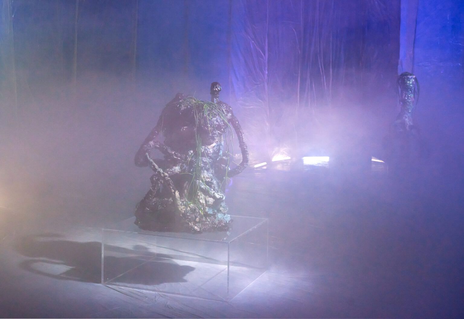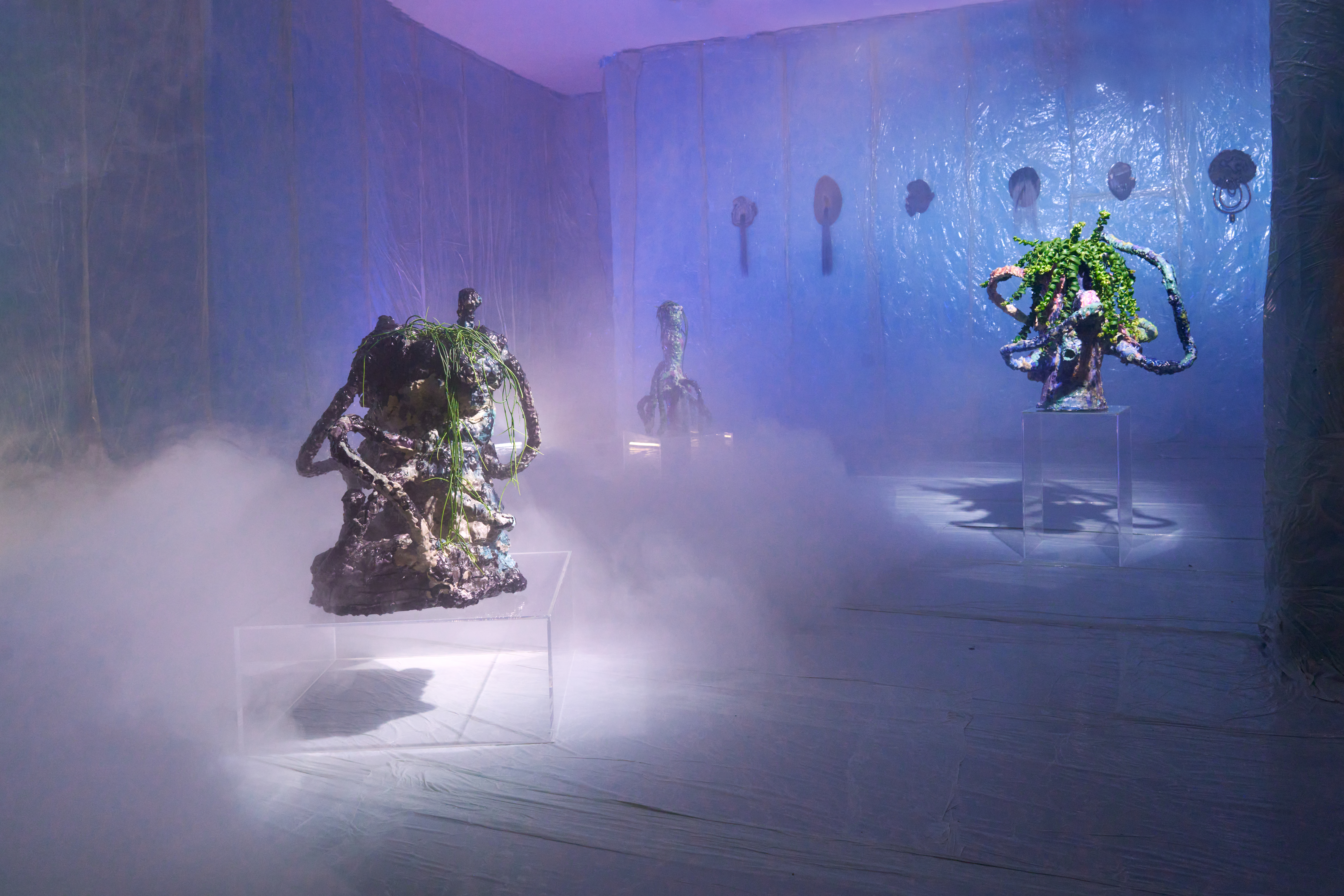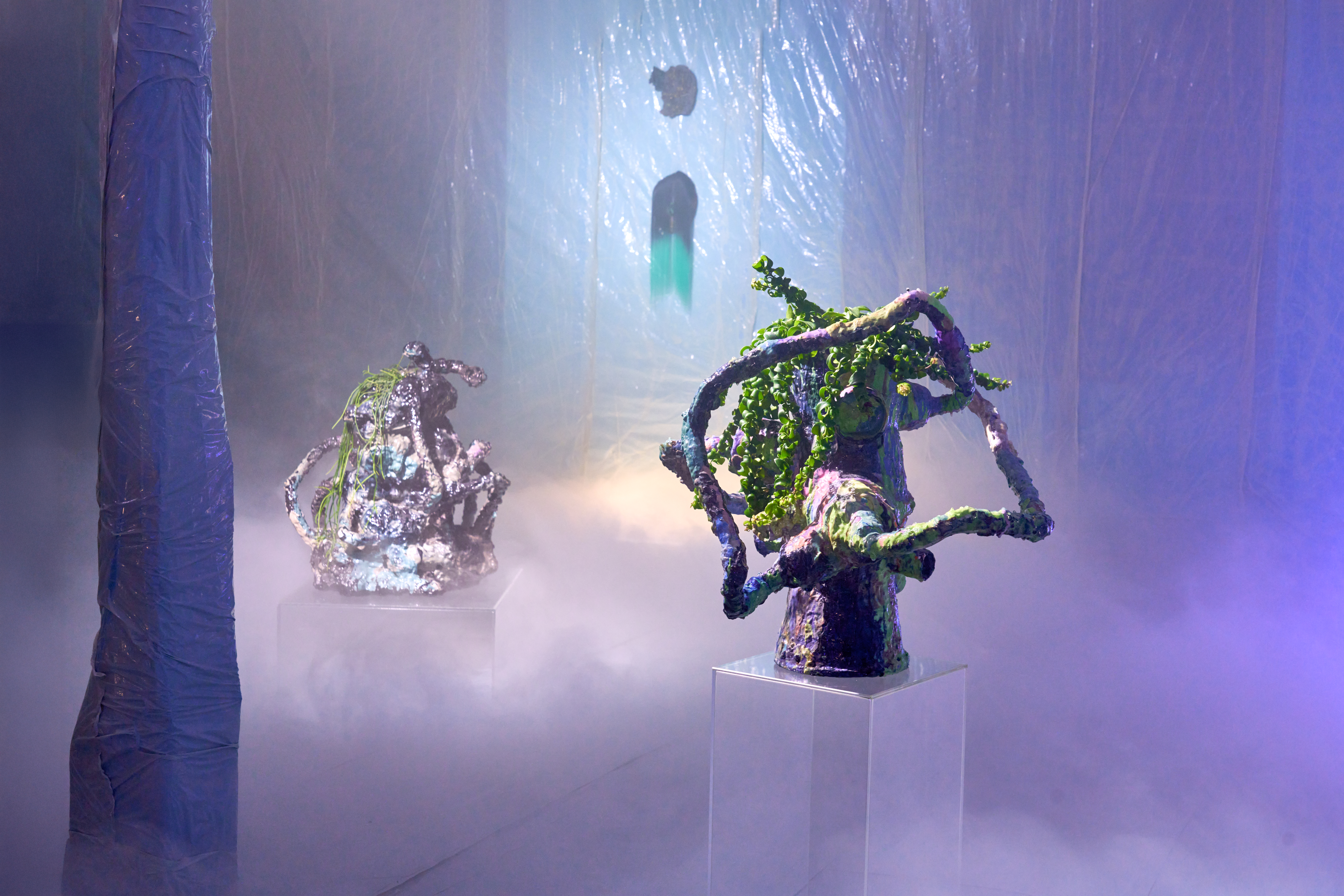 Für die Ausstellung „we are in between worlds“ von Tina Kohlmann in der freitagsküche, Frankfurt, habe ich die fotografische Dokumentation übernommen. Zwischen Mineral, Kunsthaar und mythischer Referenz entsteht ein Raum im Schwebezustand. Meine Bilder halten diese fragile, fast okkulte Stimmung fest.